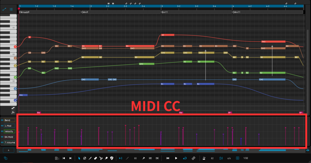 MIDI CCでベロシティやピッチベンド、ビブラートなど様々な表現をエディタで直感的に編集することができるようになりました。DAWのエディタと似ていて馴染みがあるので、使いやすいです。