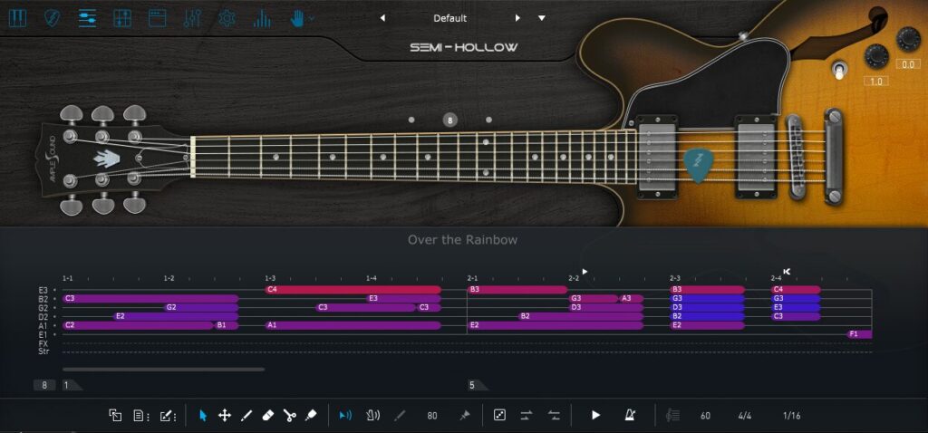 Ample Guitarシリーズはまさにそのような人のための音源です。今回レビューするSH (Semi Hollow)はセミアコ音源で独特の甘くてChillな空気感を直感的な打ち込みで出すことができます。Lo-fiやR&Bなどのジャンルとは相性抜群です。