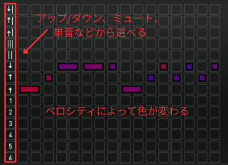 バージョン4以前はここまでで説明した通り、ギターのタブ譜のような形式でした。そこで、今回はピアノロールのようなビューが追加されました。これによってギターの構造に詳しくない人でも直感的に打ち込むことができるようになっています。
