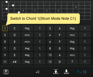 Strummerパネルでは名前の通りコードストロークのパターンを作成することができます。