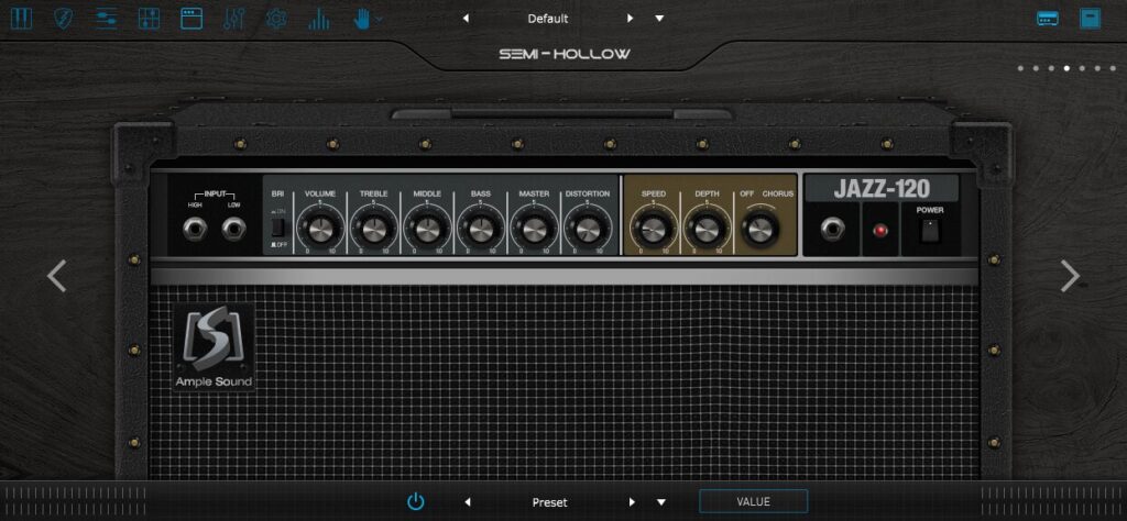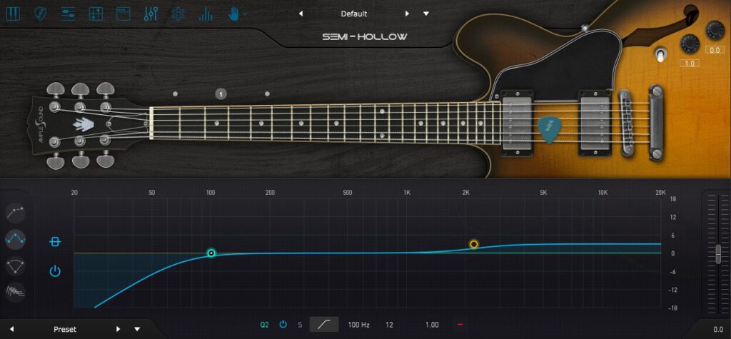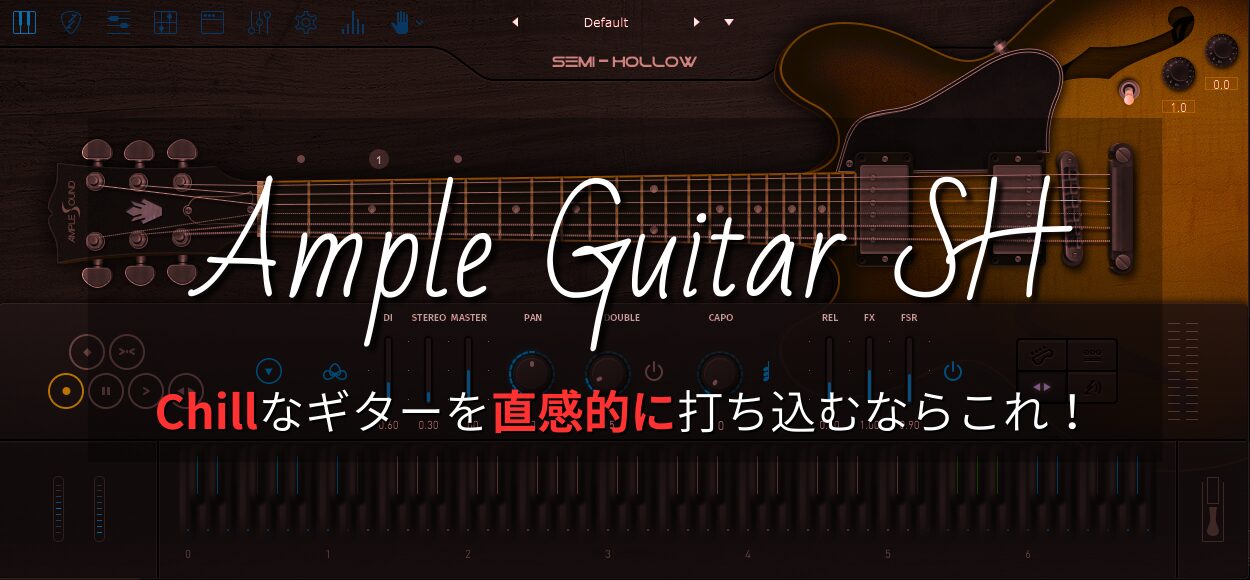 Ample Guitarシリーズはまさにそのような人のための音源です。今回レビューするSH (Semi Hollow)はセミアコ音源で独特の甘くてChillな空気感を直感的な打ち込みで出すことができます。Lo-fiやR&Bなどのジャンルとは相性抜群です。